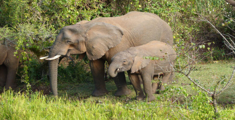 Banner photo: Sipi Falls, Uganda. Above: top left – elephants in Forest Reserve, Kenya; top right – Kibalo Cave, Kenya; middle left – Forest Reserve, Kenya; middle right – gourd in cave in Forest Reserve, Kenya; bottom left – transboundary hike, Kenya to Uganda; bottom right – park entrance, Kenya. (Credits: Christopher Powles and Stephen Powles).